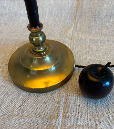 A delicately shaped table lamp with the base made from brass with the stem wrapped in black leather for a luxurious and heritage touch.
